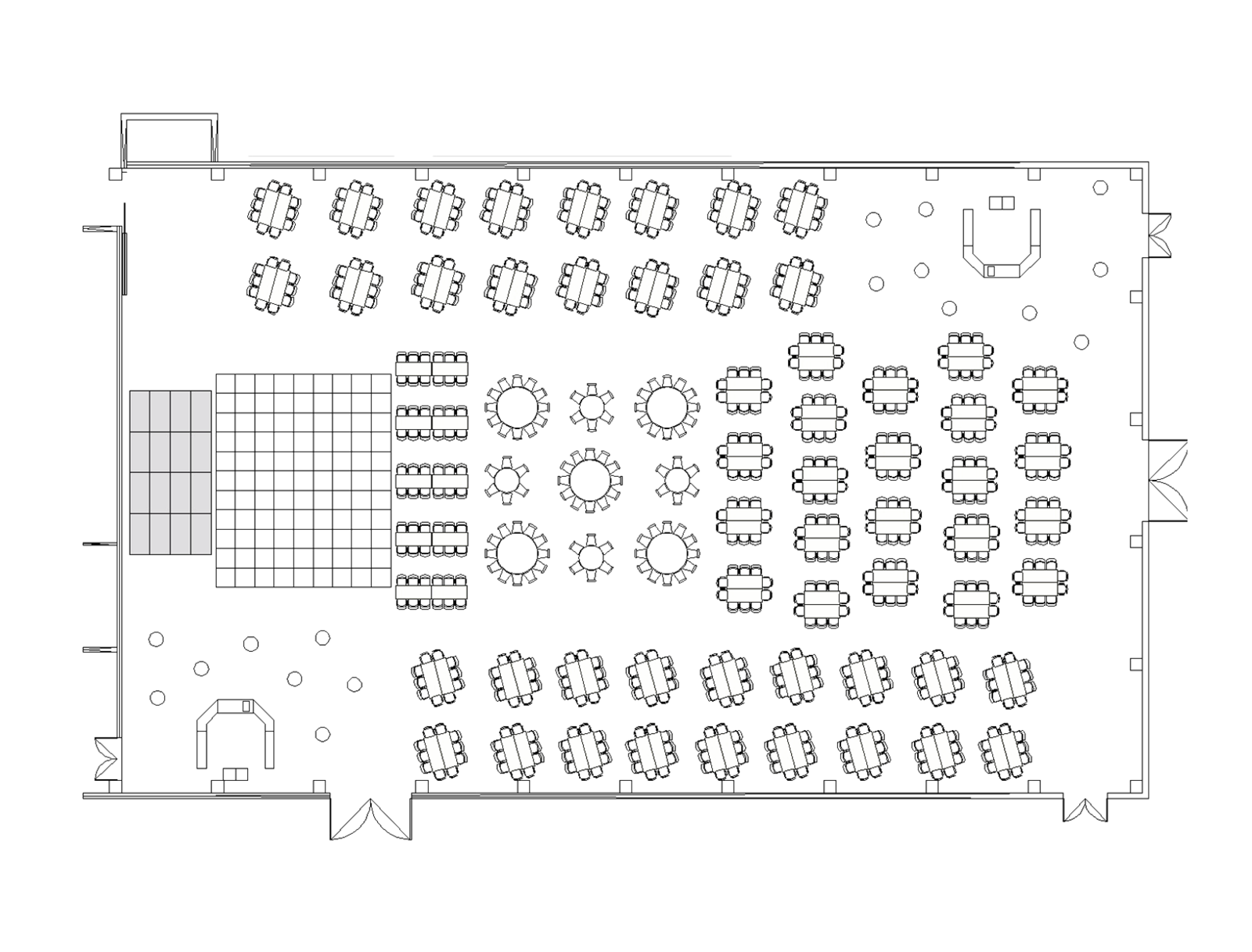 variable Bestuhlung (rund und eckig)