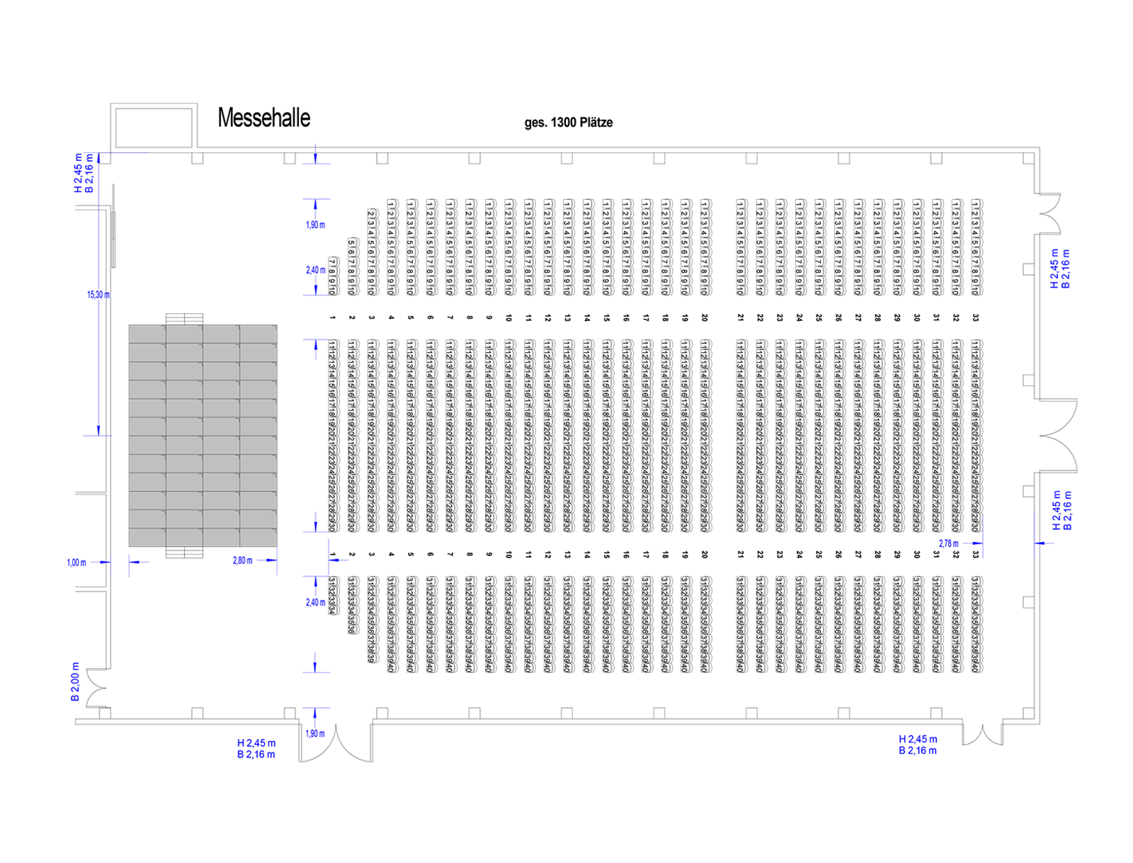 Wir bieten Ihnen, was Ihre Veranstaltung braucht; nicht mehr als Sie wollen, aber ganz bestimmt alles, was Sie wünschen. Hier ein Anklang unserer Leistungen für die Messehalle.