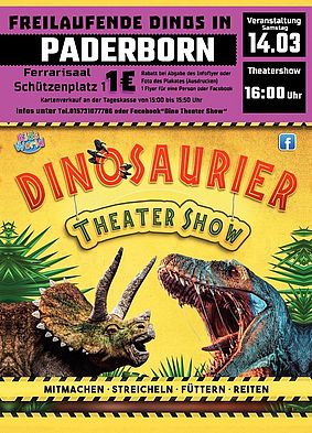 E-Mail: Theatershowdino.@gmail.com oder über Telefon Nr.: 01573/ 10 777 86 Reservierung für die Show.