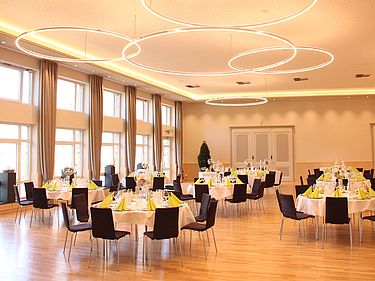 Ausreichend Platz für Bankette, Kongresse und große Events - bei dieser Halle handelt es sich um ein wahres Raumwunder.